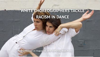 While creating task, which focuses on the weaponization of white women, Sarah and Brittany worked to interrogate their own racial and gendered identities through personal and communal practice. In rehearsal, they worked to diagram the concepts and felt experiences of race and gender offered by Black cultural thinkers like George Yancy, Toni Morrison, bell hooks, turning those thoughts and stories into choreography. Sarah and Brittany also organized a group of white women artists to participate in ongoing anti-racist education. They gathered and paid a team of women of color consultants to offer ongoing feedback on the creation of the performance. During the creation of this work, the task creative team actively attended White People for Black Lives meetings and canvassed for the Reform LA Jails initiative. Sarah presented a lecture/demonstration at Pieter Performance Space which asked the Los Angeles experimental dance community to consider the impacts of white supremacy in present day western concert dance. All workshops and performances raised funds for Black Lives Matter. As a work that continues to tour, each production of task uses performance and programming to raise funds for local Black Lives Matter chapters and provides anti-racist education for white communities.